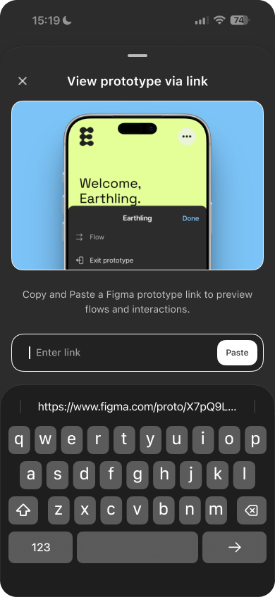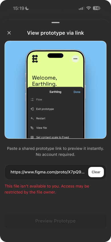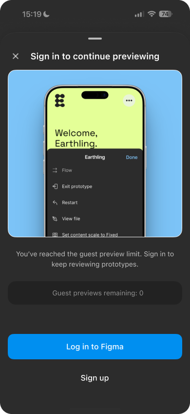 If the Figma app is installed and you’re signed in, the prototype opens there. Otherwise, it opens in the browser.
